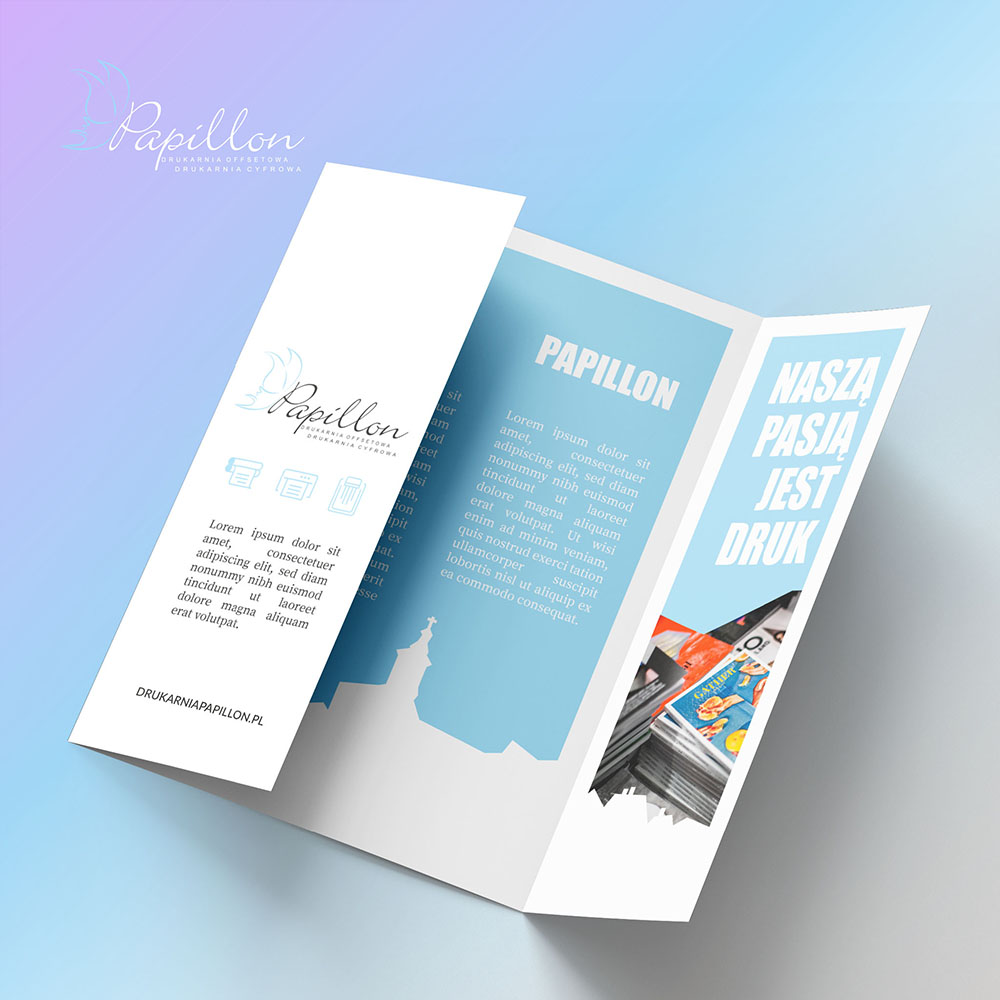 Ein Flyer gehört zu den einfachsten und gleichzeitig am häufigsten verwendeten Werbemitteln. Zudem kann dieses ungefaltete oder gefaltete Papierblatt die wichtigsten Informationen über ein Produkt, eine Dienstleistung oder ein Event effektiv vermitteln. In der Druckerei Papillon in Krakau bieten wir den professionellen Druck von Werbeflyern in verschiedenen Formaten und Konfigurationen an – ein- oder beidseitig sowie gefaltet zu ausgewählten Varianten wie Z-Falz oder C-Falz.