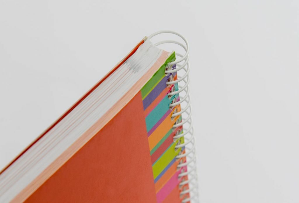 A popular form of binding for multi-page calendars. It is also used for catalogs or brochures, but on a smaller scale. The pages are bound with a metal spiral. Various colors are available, such as silver, black, red, green, blue, and others. Spiral binding is convenient for browsing, but it is not a cheap form of binding.