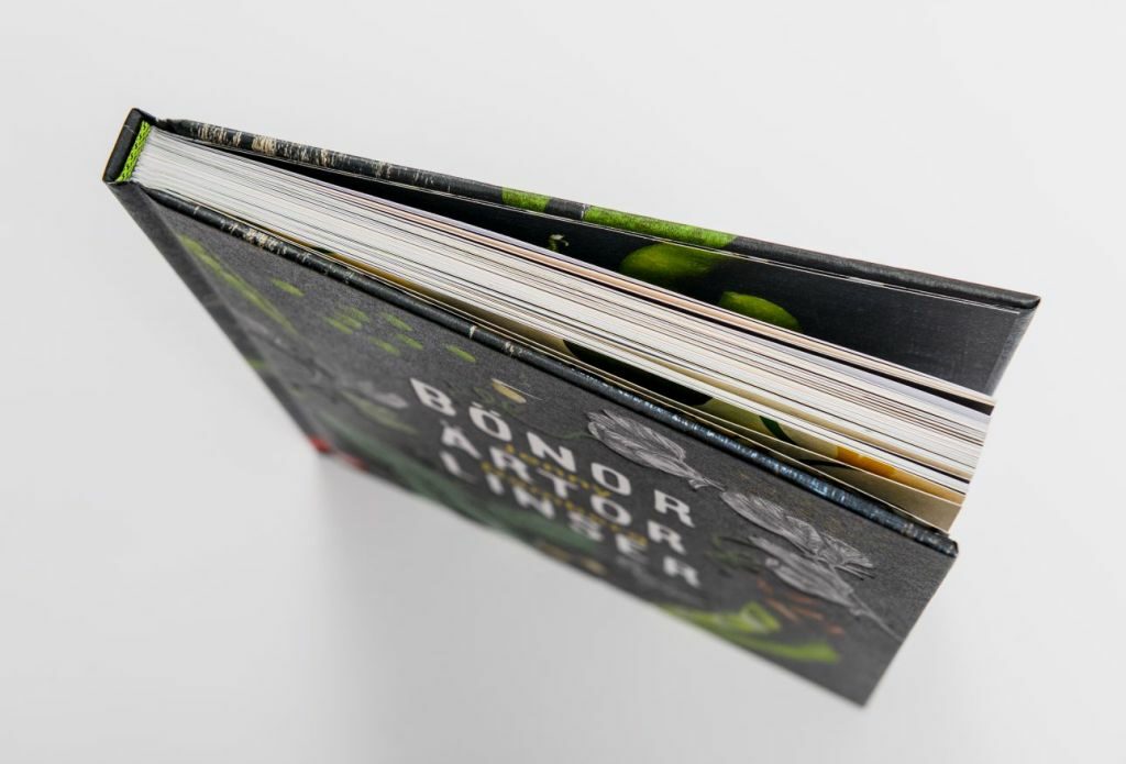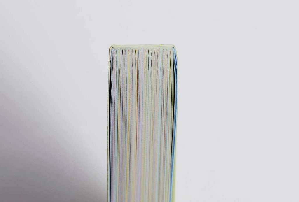 Also known as album binding. As the name suggests, it is a very solid and durable form of binding. To make it, solid board with a thickness of 1 mm to 3 mm is used. Naturally, the solid board itself is not printed on, but rather covered with printed paper. The printed cover is produced on coated paper 130–150 g, which is then laminated onto the solid board. The book block, sewn with threads, is glued into the cover, also called the “case.” To ensure that the solid board is not visible on the inside of the cover, it is finished with endpapers, usually made of unprinted, uncoated offset paper.