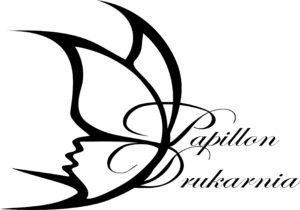 Poniżej prezentujemy pierwotne logo naszej drukarni. Finalnie zdecydowaliśmy się jednak na wersję bardziej nowoczesną i lekką – zgodną z duchem marki Papillon.